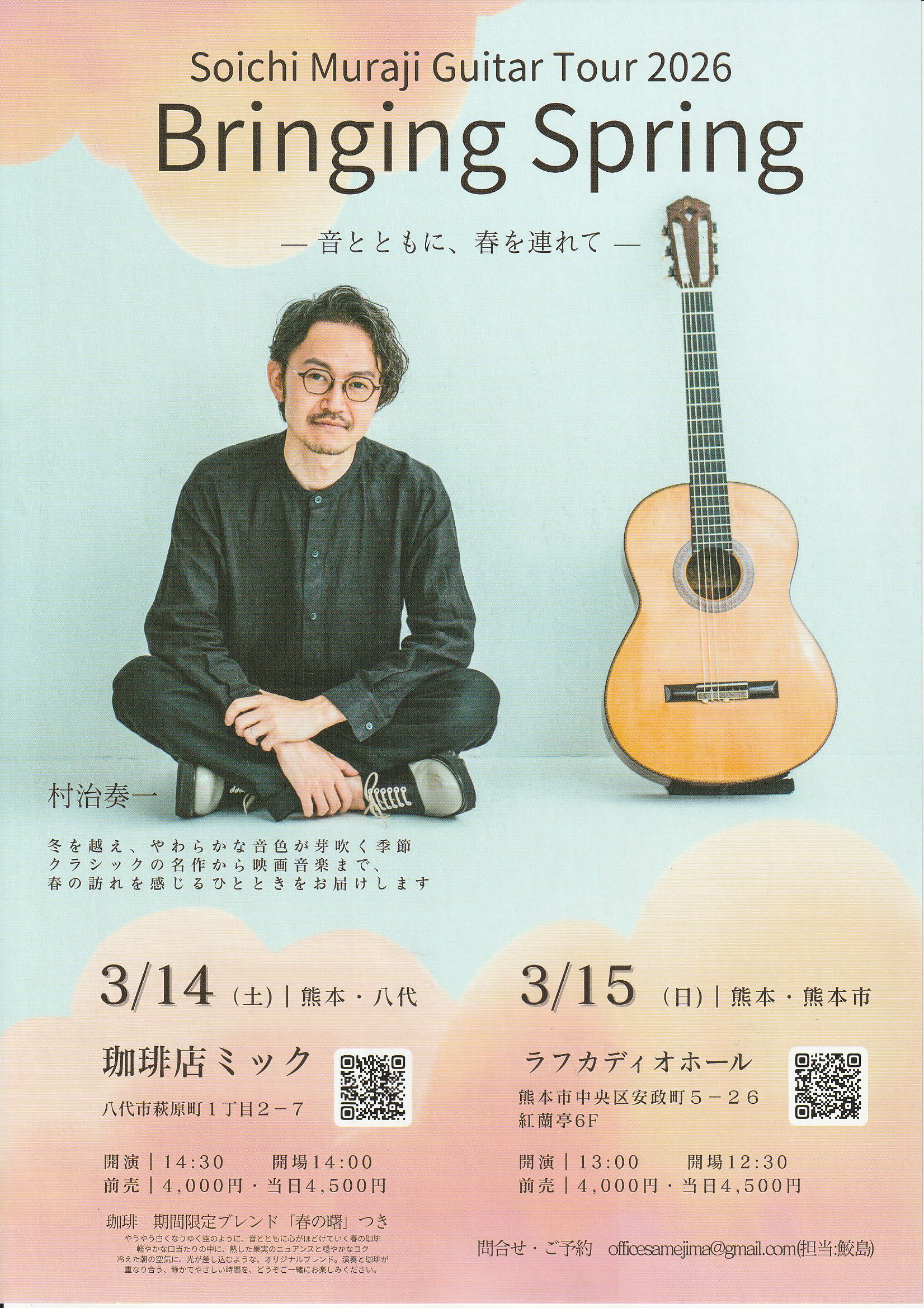 村治奏一 Guitar Tour 2026 Bringing Spring -音とともに、春を連れて-