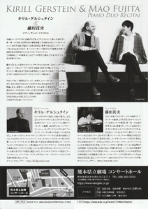唯一無二の美音で世界各国の聴衆を魅了する藤田真央と、彼がハンス・アイスラー音楽大学で現在師事しているジャズからクラシック、現代作品まで演奏するキリル・ゲルシュタインとの2台ピアノと連弾。
