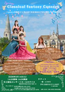 フルートアンサンブルエンジェルブレス(牛島梨紗、松島里絵、松村光子、山内麻祐子)と、ピアニスト谷脇裕子が出演。