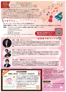 NHK交響楽団の後藤康(ヴァイオリン)、小畠幸法(チェロ)の演奏と、福島絵美の朗読による読み聞かせコンサート。