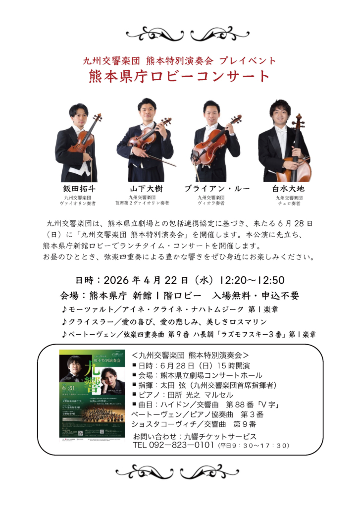 九州交響楽団 熊本特別演奏会 プレイベント 熊本県庁ロビーコンサート